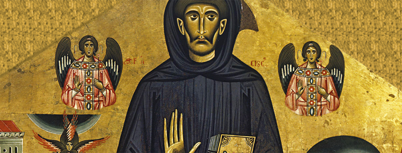 Para ello, fueron necesarias fuentes literarias que inspiraran los nuevos repertorios iconográficos. En este sentido, fue el maestro italiano Bonaventura Berlinghieri, natural de Lucca, el primero en firmar una obra dedicada a san Francisco. Datada en 1235, la tabla se conserva en el lugar para el que fue realizada originalmente, la iglesia de San Francisco, en Pescia, poniendo de manifiesto la importante labor de los franciscanos como comitentes para dar a conocer a través de las imágenes a su fundador. El pintor, formado en el taller de su padre, utilizó el formato pentagonal propio de la escuela toscana del Duecento, utilizado a menudo para las piezas de madera que ornamentaban y ennoblecían los altares.